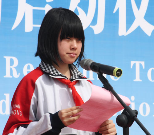 参加植树活动的北京中小学生代表在 “国际森林...