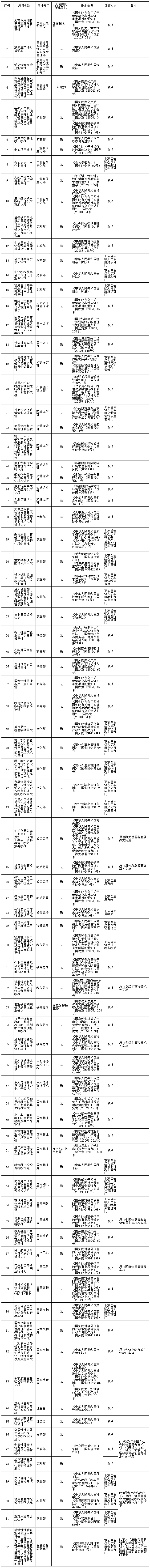 附件:国务院决定取消和下放管理层级的行政审批项目目录(共计82项)