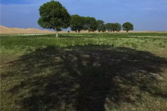 30多年前的牧民旧居先已被沙漠绿洲“包围”,成为记录库布其人艰苦创业的历史遗迹。