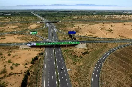 “穿沙公路”以固态形式绵延于库布其沙漠腹地,像一把利剑挥向库布其沙漠。