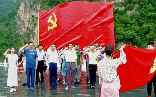 按照国家林业和草原局经济发展研究中心党委“七一”系列活动安排,6月22日,经研中心党委组织中心党员、入党积极分子和共青团员参观了位于京城房山区霞云岭堂上村的《没有共产党就没有新中国》纪念馆,并在纪念馆前举行了隆重的新党员入党宣誓、老党员重温入党誓词的活动。经研中心党委委员、主任李冰同志主持仪式, 中心党委副书记菅宁红同志领读誓词。参加宣誓仪式活动的有中心领导班子成员、新党员和老党员、入党积极分子和共青团员。